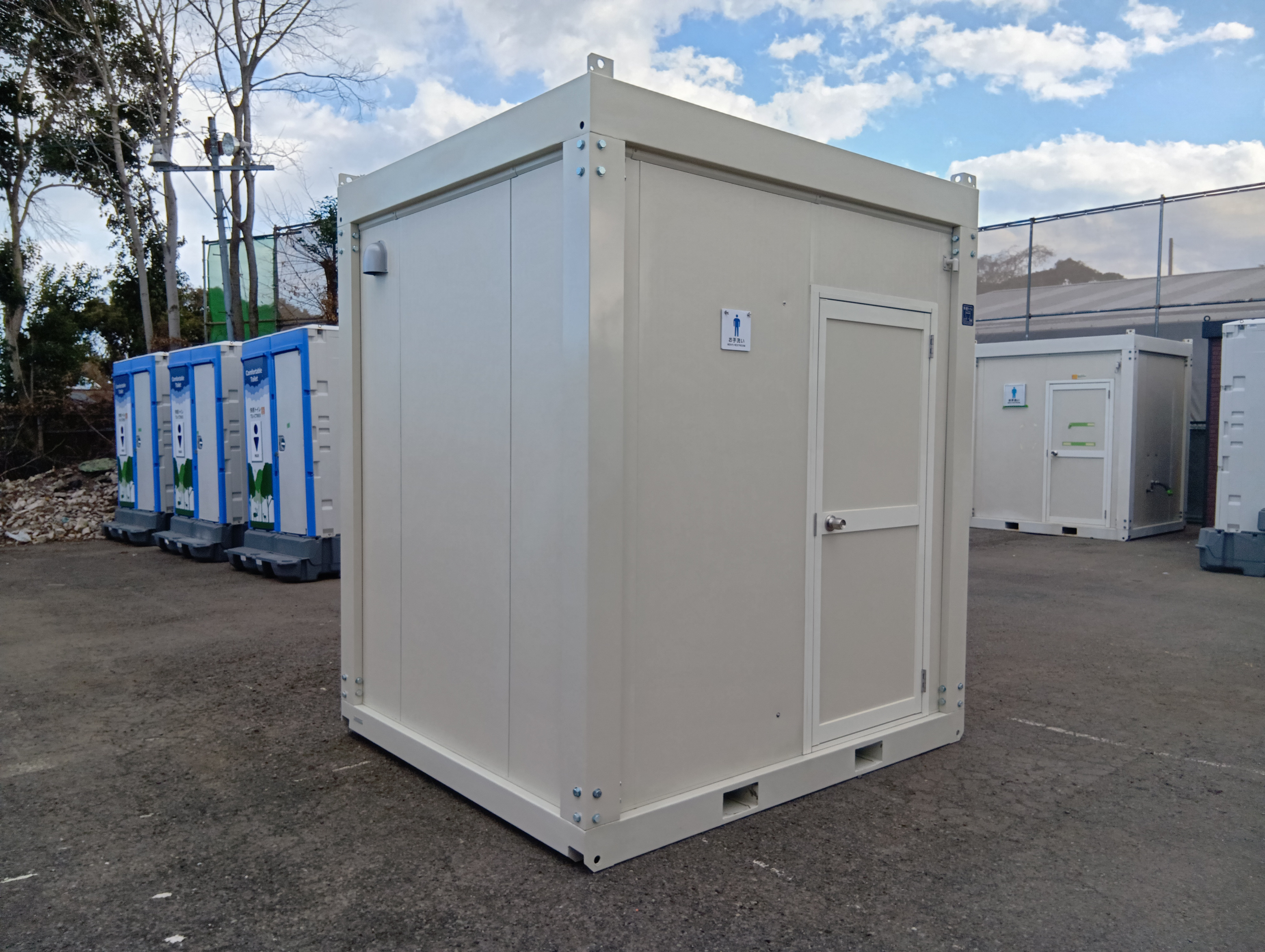 【匂わない・清潔】本水洗の快適トイレ/ユニットハウス型トイレ(1.4坪・2.8畳)│現場の不満を解消する洋式仮設トイレ
