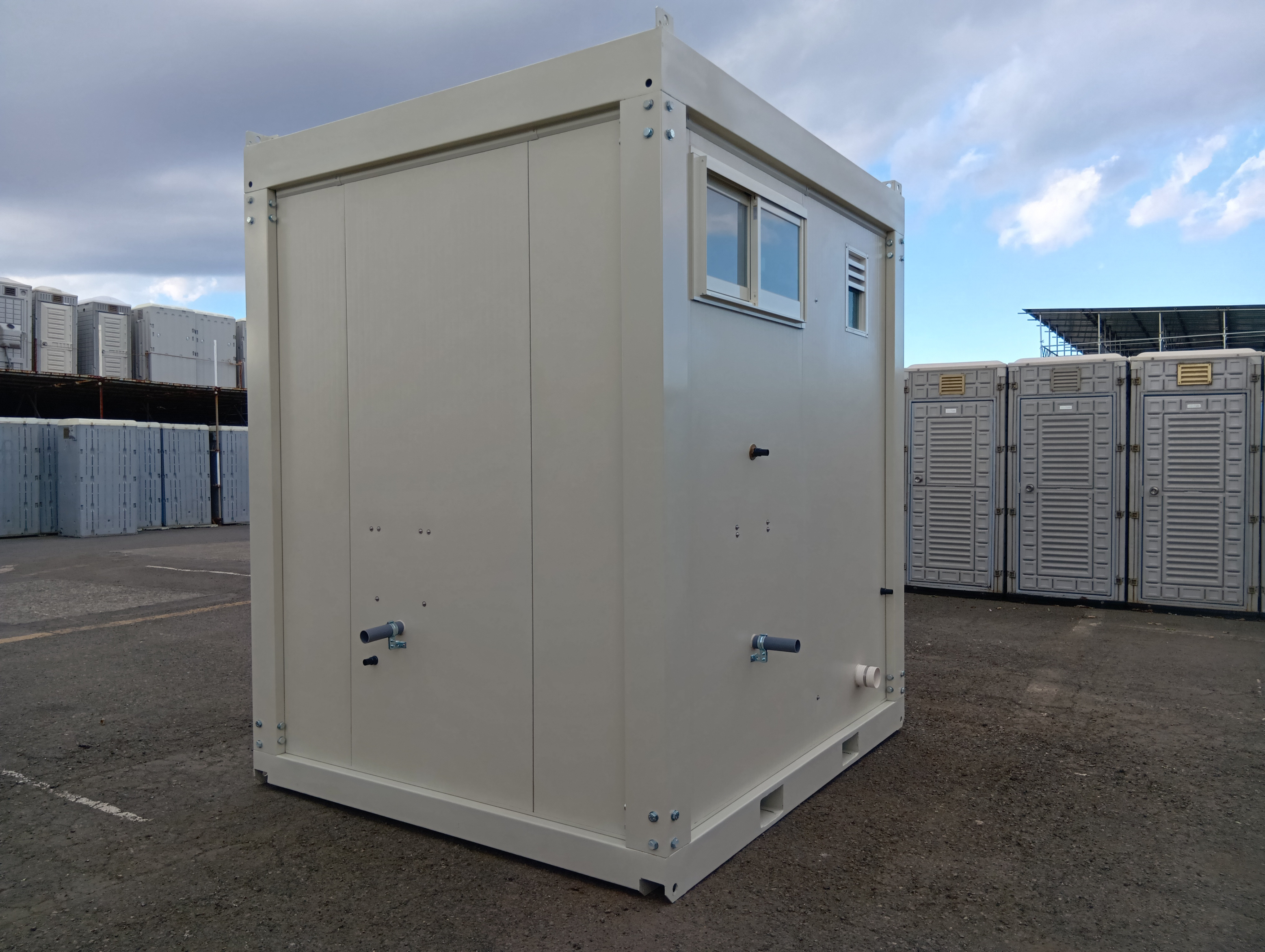 【匂わない・清潔】本水洗の快適トイレ/ユニットハウス型トイレ(1.4坪・2.8畳)│職場の不満を解消する洋式仮設トイレ