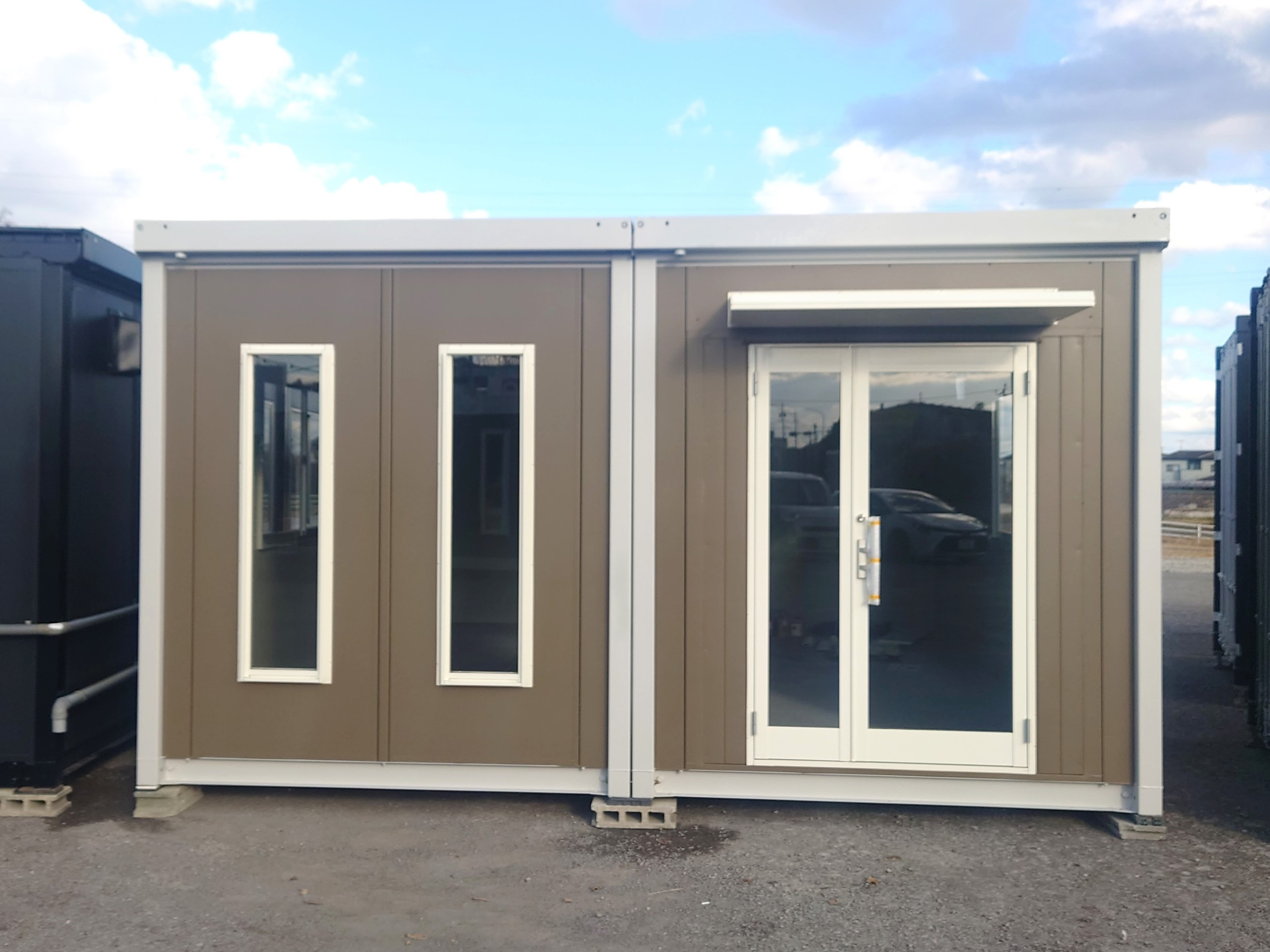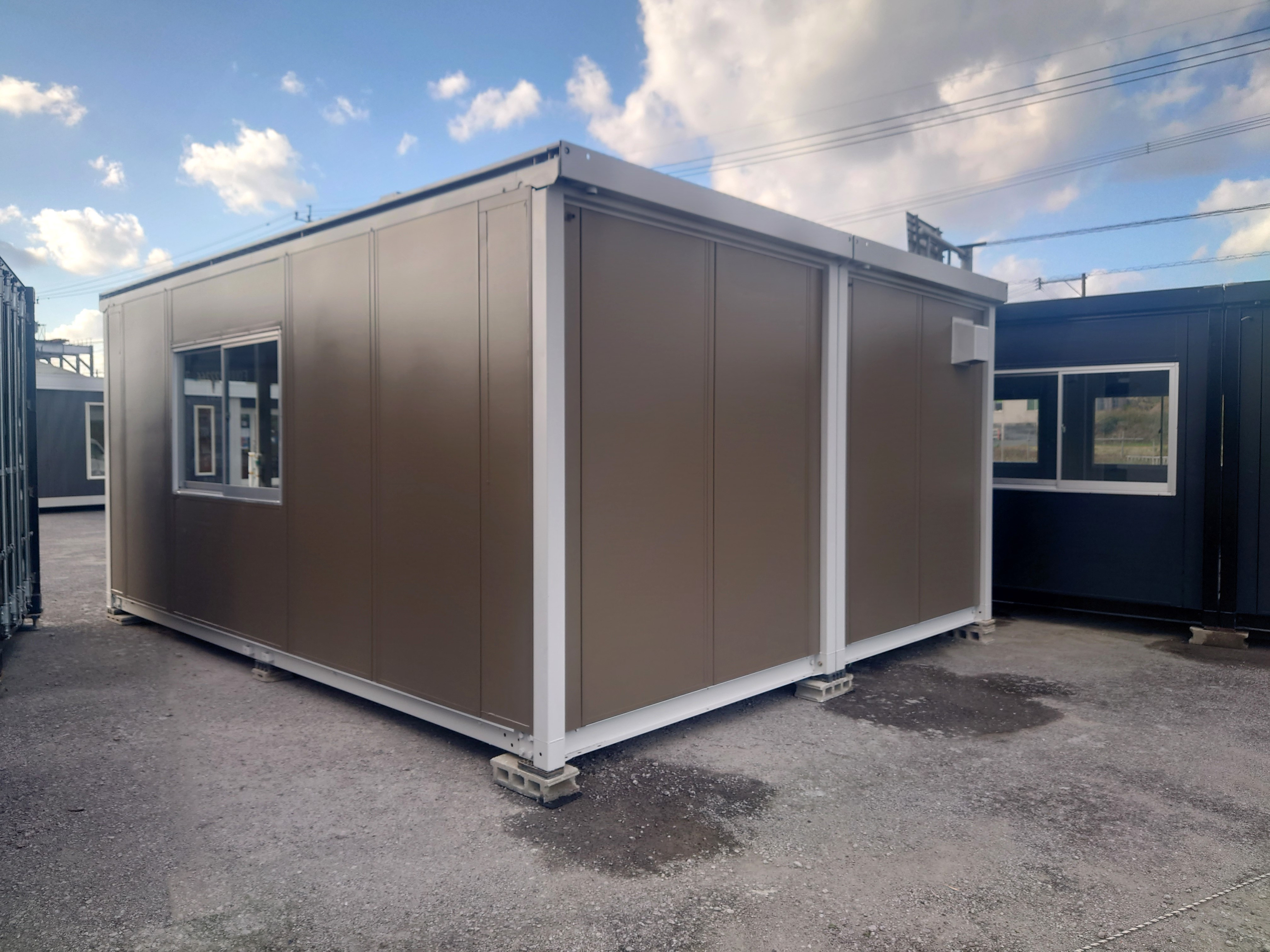 3.8坪アウトレットプレハブ・ユニットハウス-木目ブラウン×ブラック(フローリング仕様)