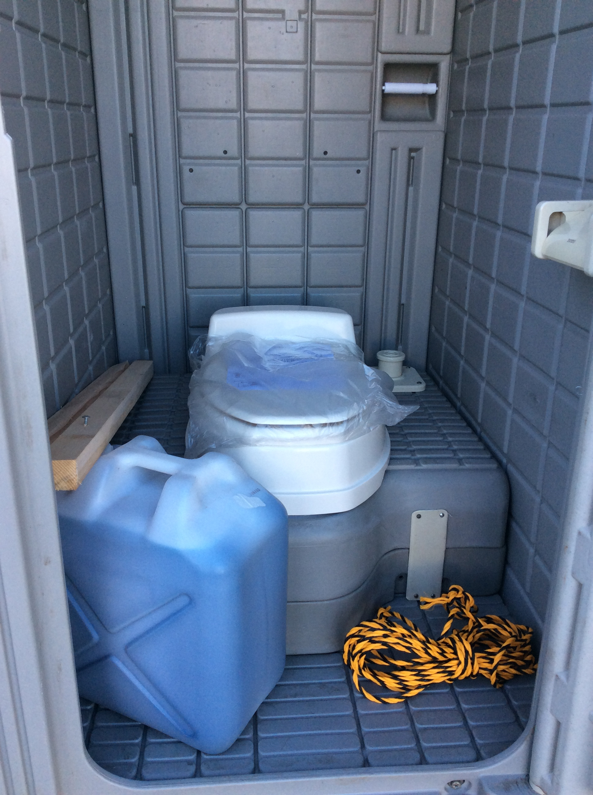 後ろにポリタンクを置いて使用するタイプのトイレです。