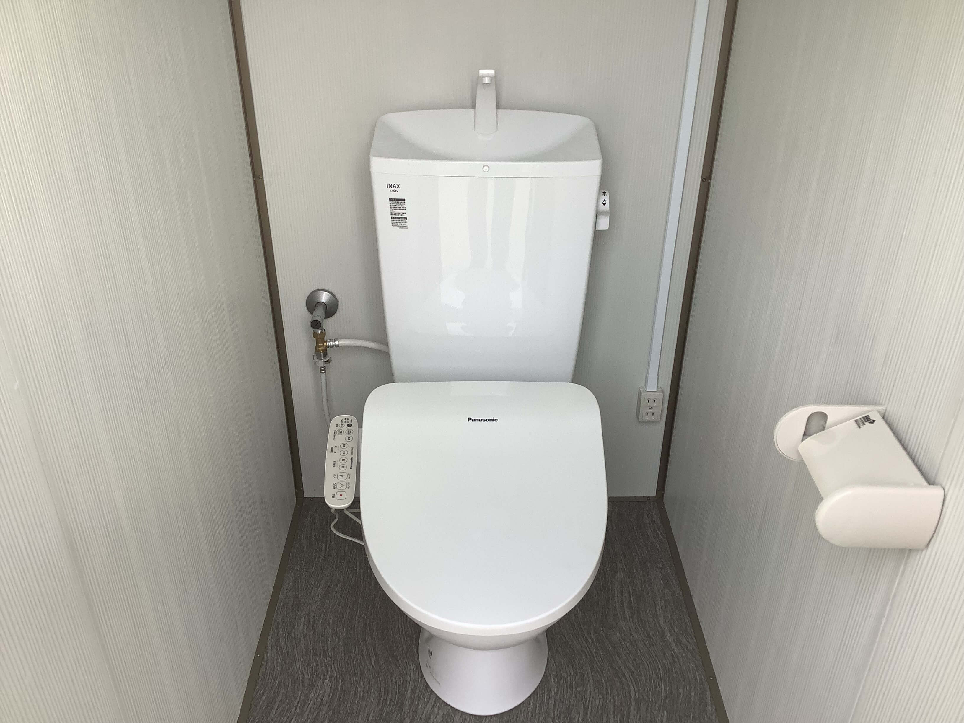 オプションの温水洗浄便座(ウォシュレット)がついておりますので後から追加設置不要です。