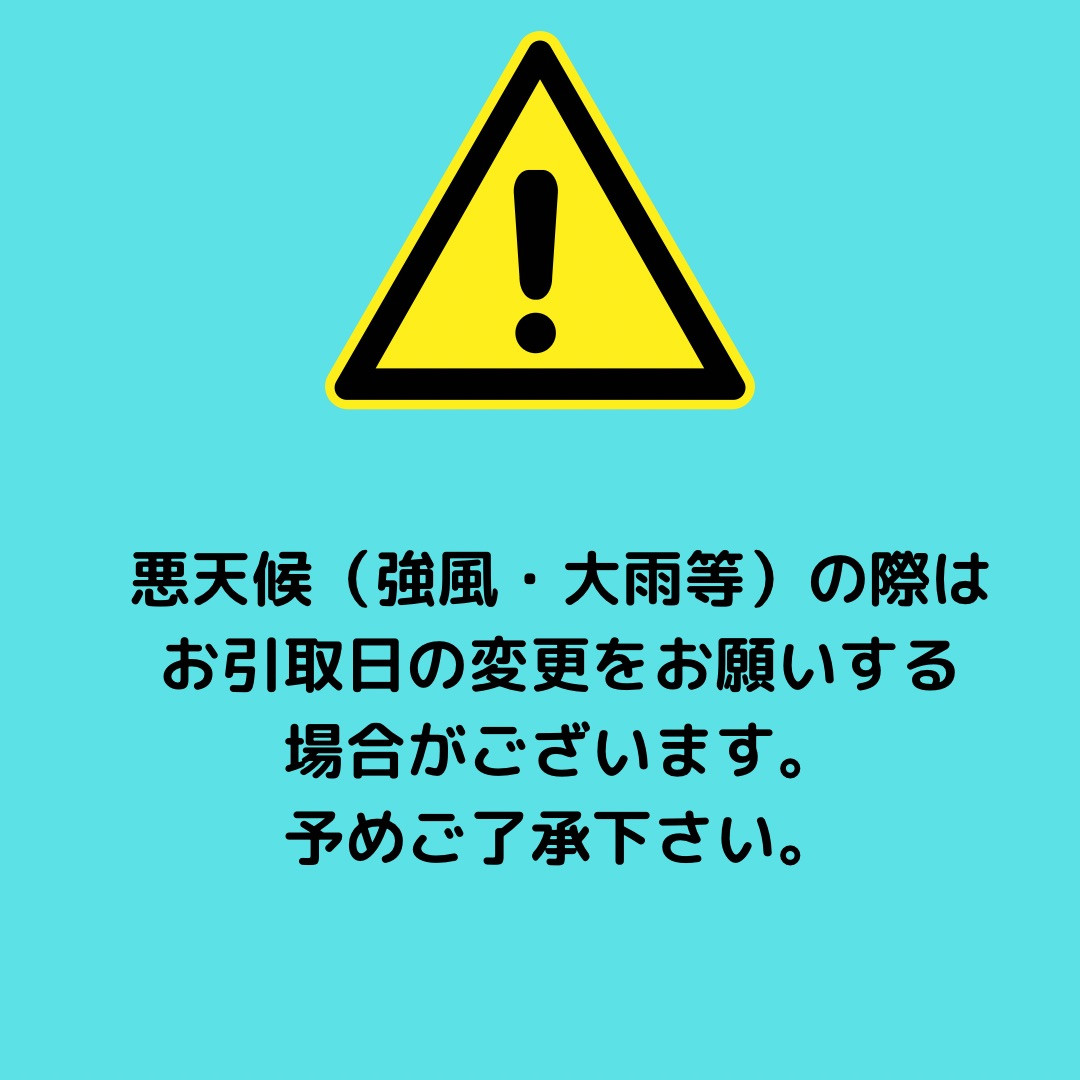 ※悪天候(強風・大雨等)の際はお引取日の変更をお願いする場合があります。予めご了承下さい。